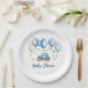 These designs feature soft, watercolor-style paper plates in shades of blue and peach, adding a touch of elegance. The delicate brushstrokes and pastel hues create a dreamy and heartwarming atmosphere, perfect for celebrating a new baby.