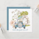 Woodland cuteness to announce the arrival of your baby boy. On the front is an illustration of a charming bear driving a vintage car and surrounded by florals and foliage. On the back, all the details of your new son. Easily personalise the words on both sides. You can also change the coordinating turquoise background on the back to another colour if preferred, as well as text styles and colours via the customise further option.
