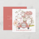 Woodland charm to announce the arrival of your baby girl. On the front an illustration of a cute bunny driving a vintage car and surrounded by florals and foliage. On the back, all the details of your new daughter. Easily personalise the words on both sides. You can also change the coordinating coral background on the back to another colour if preferred, as well as text styles and colours via the customise further option.