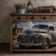 This design excels in spaces that celebrate American automotive history and western aesthetics. Its detailed composition and authentic patina make it particularly suited for garage, workshop, or den furniture, where it creates an immediate connection to classic car culture. When applied to furniture pieces, it transforms them into nostalgic focal points that honour the timeless appeal of vintage automobiles while maintaining contemporary appeal.
