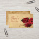 Elegant vintage caramel brown flower shop business card template design featuring decorative corner scrolls on the top and bottom with a photo of three red roses in the lower corner. The background is given a textured grunge application for an antique paper look. This design comes in several ready made backgrounds. This design also comes on many other stationery products to suit all your wedding set needs.