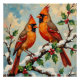 Vintage Cardinal Pair on Snowy Holly Branch Poster
