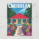 Escape to a tropical paradise with this vibrant, vintage-style postcard. The artwork features a classic Caribbean house with a bright red roof and blue accents, surrounded by a lush garden of colourful flowers and towering palm trees. This stylised illustration evokes a sense of island charm and is perfect for a souvenir, a note to a friend, or as a beautiful piece of art for your home.