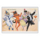 Vintage artwork by Arthur Thiele features a group of four cats dressed in costumes who are dancing and drinking the night away at Carnivale (or Mardi Gras). The German artist, Carl Robert Arthur Thiele (1860-1936) commonly went by the name Arthur Thiele. He was an illustrator of books, sheet music and postcards. He was famous for his comical anthropomorphic animals dressed in clothing and depicted in human-like scenes. Dachshunds were a favourite subject of his. In addition to animals, other subjects he illustrated were sports postcards, vegetables brought to life, snowmen, bathing beauties, and WW1 era propaganda postcards. The Internet is full of references confusing Carl Robert Arthur Thiele with another German painter of his time named Julius Arthur Thiele who painted landscapes. They are not the same artist. This card is blank inside for your own message.
