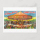 This postcard is a reproduction of an advertisement for the Jumping Horse Carry-Us-All (carousel), advertised as "a perfect pleasure producer." It shows the carousel in a fair/carnival setting.