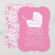 Vintage Carriage Baby Shower Cute Pink Girl Invitation