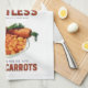 Crisp and lovely vintage label on simple white kitchen towel. Eat all of your carrots, they're good for you.