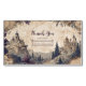 Showcase your brand with this unique and adventurous business card, designed to resemble a page from a vintage, hand-illustrated atlas of a fairytale kingdom. The design features a panoramic landscape with two magnificent castles perched on cliffs overlooking a misty mountain valley. This enchanting scene is beautifully enhanced by antique cartography elements in the corners, including intricate botanical scrollwork, compass-like diagrams, and elegant calligraphy script. The entire illustration is rendered on a heavily aged and stained parchment background, giving it the authentic feel of a treasured, old-world manuscript or explorer's map.