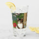 Glass Tumbler featuring a cute kitten illustration. A white cat with dark brown stripes relaxes in a garden of spring flowers. A perfect gift for cat lovers!