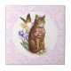 Vintage Cat Iris Flowers and Butterfly Tile