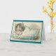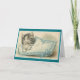 Victorian / Vintage note card. Adorable black and white kitten on a blue and white pillow! Perfect all occasion note card for cat lovers!