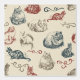 Vintage cat pattern on a beige background with curlicues. The cats are from the book Our Cats by Weir, 1892, courtesy of Project Gutenberg.