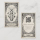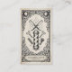 Stand out with this vintage celestial barber business card featuring a mystical tarot-inspired design. Elegant ornamental borders frame classic barber tools including straight razors, scissors, combs, and a traditional barber pole, creating a unique and memorable branding piece for barbers and barbershops.