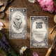 The design features an elegant mystical illustration of a lotus flower and botanical elements framed by ornate tarot-inspired details, creating a beautiful celestial aesthetic that stands out from traditional floral branding.