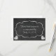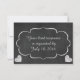 This retro fashion wedding response card features a scroll sign design with your custom text inside. At the bottom corners are two chalk design hearts. The images and text are placed on a dark grey chalkboard background. The back of the response card is white for your respondent to easily mark. All the text is customisable. This card matches the "Vintage Chalkboard Heart Wedding Invitations" in our store.