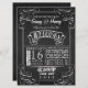A fun, carnival-styled invitation with ornate designs on a mock chalkboard.
