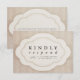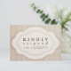 This wedding invitation response card features a striped cream background on which a darker cream ribbon bears a white emblem with scalloped edges. This curved, symmetrical form, which looks like a paper cut-out, frames the words "Kindly respond [by - customisable date]" with a swirly script flourish on the front. On the back is a line for the guest to write their name and check whether they accept or decline, and the number of guests attending. The design has a distressed, vintage, aged feel which complements the theme of simple, old-fashioned elegance.