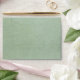This vintage style, charming design features an aged, textured, and distressed sage green outside, while the inside is of vertical sage green and cream stripes, giving the envelope a fanciful, stylish feel. The back flap has a ticket-like outline framing your name(s) and return address. The front has been left blank for addressing and postage. This envelope was designed for a matching wedding invitation.