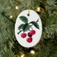 Oval ceramic ornament with a vintage 1940s image of red cherries on white. The back is white with optional text. See the entire Patriotic 40s Ornament collection in the PARTY FAVORS section.