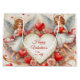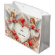 This Valentine's Day paper gift bag showcases a charming watercolor illustration of vintage-inspired cherub angels, complemented by classic red hearts and pink roses. The paper bag is offered as a customizable option or can be purchased as depicted, featuring the message "Happy Valentine's Day." Currently displayed in a large size, additional sizes are available.