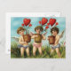 Vintage Valentine Cherubs holding growing hearts postcard.