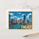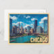 A stunning vintage-style postcard showcasing the iconic Chicago skyline, with its striking skyscrapers towering over the Chicago River. The vibrant, classic colours and retro filter give this image an authentic vintage travel poster feel, evoking the city's rich history and architectural beauty. This card is perfect for sending a thoughtful message, commemorating a trip to the Windy City, or framing as a small piece of city art. A great design for anyone who loves Illinois, city views, or classic American cityscape designs.