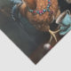 In the midst of a serene rain-kissed setting, the “Raindrop Rendezvous” captures a trio of chickens, each adorned with their own unique regalia. The golden-brown hen on the left boasts a vibrant red comb, reminiscent of a crown, while the speckled middle chicken wears a headdress of blue and red, paired with a necklace of colourful beads. The white hen on the right, with hints of brown, mirrors the middle one with a large red comb and matching beaded adornment. Arrayed before them are the trappings of a quaint tea party: cupcakes crowned with strawberries, elegant teacups on saucers, and beads that echo their necklaces. The dark backdrop, streaked with the trails of rain, adds a touch of melancholy to the otherwise whimsical gathering, creating a poignant contrast that enchants the viewer.