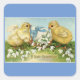 Cute, vintage chicks with an egg and flowers, with message, "A Glad Eastertide", is featured on this small square sticker. Use for that special Easter mailing, scrapbooking, decorating and more!