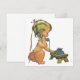 Vintage illustration children and babies image with a cute young blonde girl with pony tails talking on her first phone. Call all your friends and tell them the good news!