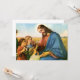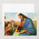 Vintage illustration religious design featuring Jesus Christ with children who adore him and bring him flowers.