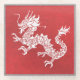 Traditional Chinese dragon symbol on red background.