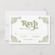 An elegant RSVP card featuring a whimsical Chinoiserie frame and soft olive green tones.