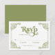 Vintage Chinoiserie Frame Olive Green Wedding RSVP Card