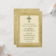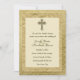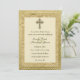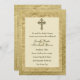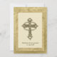 A striking invitation featuring a vintage cross and background image of old parchment style paper.