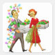 Vintage Christmas 1950's Couple Square Sticker