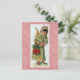 This beautiful custom vintage postcard displays a Christmas angel disguised as a young girl who is standing in the snow with her coat on, and pink ribbon on her hood while keeping her hands warm, and holding her little red purse. This adorable vintage image is set against a pink ornamental Christmas background, and makes a lovely postcard.