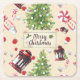 Vintage Christmas Art Pattern Square Paper Coaster