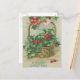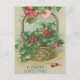 This is a vintage postcard illustration of a Christmas basket full of holly.