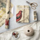 Vintage Christmas Birds Holly Berry Wrapping Paper