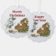 Lovely, vintage picture of two bunnies with a bird in winter, is featured on this paper ornament card for Christmas. Picture is on both sides of the ornament. One side reads, "Merry Christmas" and the other side reads, "Happy New Year". Includes ribbon to hang this ornament. A sweet hanging greeting card to send family and friends for the Holidays!