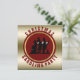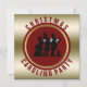 Victorian era Christmas Caroling Party Invites in traditional, festive red and gold metallic vintage look- Black silhouette of old fashioned Victorian lady and gentlemen carolers singing in the snow with a dog listening framed against deep crimson red in a circular faux gold metal frame. Against a faux gold metal effect background. Reads Christmas Caroling Party in curved matching crimson letters on front and has personalised templates for your Christmas caroling party on the back. Create your own personalised Christmas holiday party invitation design. Great for church groups and scouting holiday activities.