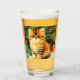 Glass Tumbler featuring a vintage Christmas cat! An orange kitty with black stripes sits in the snow. Behind the cat is a Christmas tree with red and yellow ornaments. Also on the snow is a red present. A perfect gift for the Christmas season and cat lovers!