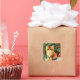 Stickers featuring a vintage Christmas cat! An orange kitty with black stripes sits in the snow. Behind the cat is a Christmas tree with red and yellow ornaments. Also on the snow is a red present. A perfect gift for the Christmas season and cat lovers!