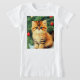 T-Shirt featuring a vintage Christmas cat! An orange kitty with black stripes sits in the snow. Behind the cat is a Christmas tree with red and yellow ornaments. Also on the snow is a red present. A perfect gift for the Christmas season and cat lovers!