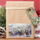 Elegant, vintage Christmas holiday stickers for ice skaters and Central Park or New York City fans- Retro Christmas design displays a Victorian era crowd ice skating in Central Park in New York City. A flag is seen flying in the background and a dog barks at the couples bundled up in hats, coats, and dresses. Beautiful Christmas holiday labels.