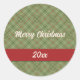 This criss-cross check pattern features vintage Christmas colours against a green background. There is a vintage red colour band across the bottom. The current design includes the text "Merry Christmas" in the middle of the sticker. The band includes the year. The text colour is cream. This is a template for you to customise in your own way.