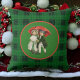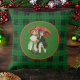This image features a vintage image of cherubic children dressed in Christmas clothing, underneath a snowy umbrella, against a backdrop of rustic Christmas plaid. The result is rustic yet classic vintage charm to decorate your home for the holidays. The children appear in a plain green circle with a thin red border, and the background is emerald green and very dark green plaid.
