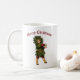 This mug has a vintage image of a lad dressed in Christmas tree sprigs with the words, "Merry Christmas!" written above. It's perfect for your holiday beverages if you like vintage and retro things. Give as a gift to someone who likes quirky vintage items.