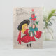 Vintage Christmas Girl Brings Gifts Holiday Card