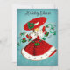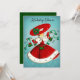 Vintage Christmas green bells red glitter girl Invitation